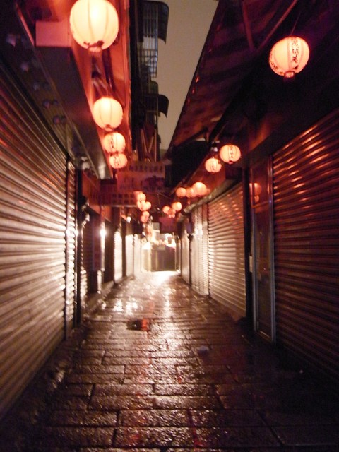 暗くなると街からは人影が消え、閑散と。