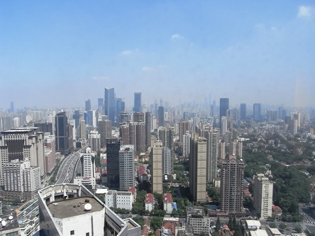 やや霞んでいますが、浦東の再開発地区まで見渡せます。