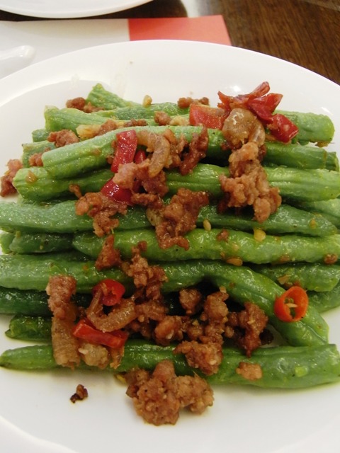 「鼎泰豊」でインゲンの肉味噌和えと排骨麺、デザート(名前忘れました)。