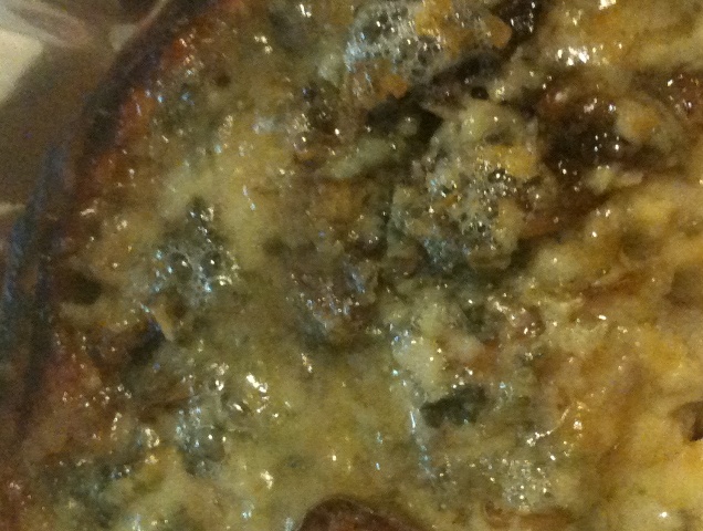 遅い昼ごはんに、自宅で冷蔵庫のスティルトンを削ってキッシュの表面にまぶし、