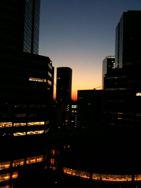 ビルの谷間からの日没に。