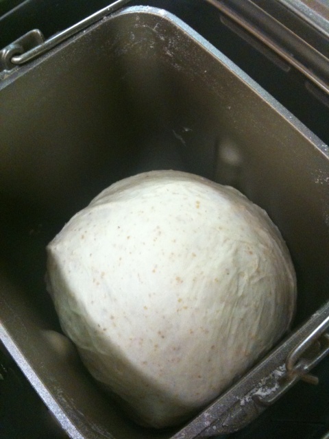 酵母の量は前回のふくらみが十分だったうえ、全粒粉を減らしたため。