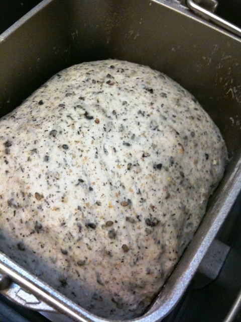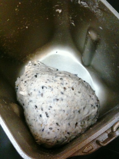次回は時間を計算して、捏ねの最終段階に間に合うようにゴマを投入しないと。