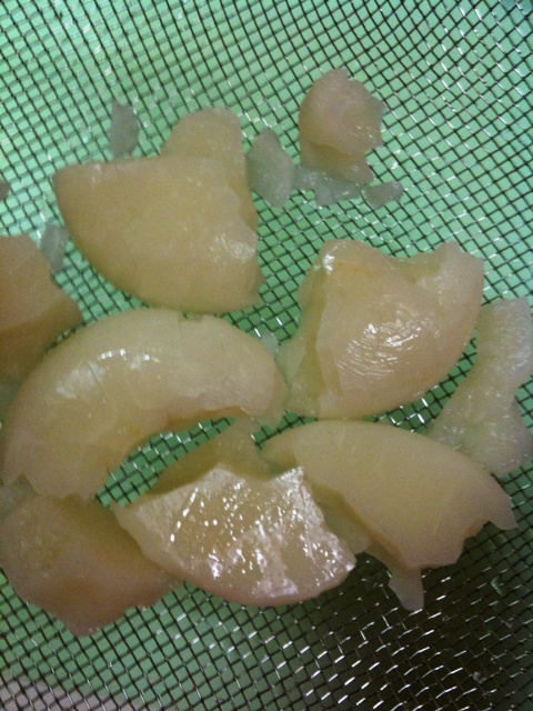 木づちを使うまでもなく手で開き、ざるにあけてカビや埃を取り除く。。