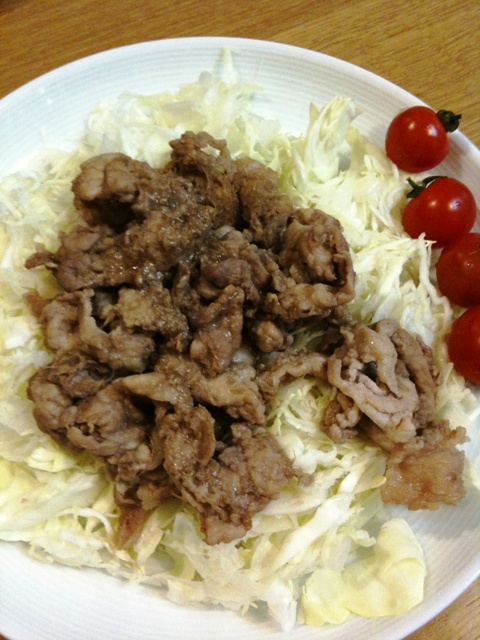 安いこま切れを使って、梅の風味をきかせた生姜焼き。