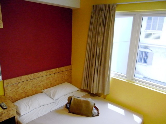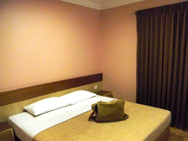 右)初日は寝るだけなのでタクシー代がかからない空港付近の安宿。郊外なので広くてきれい。