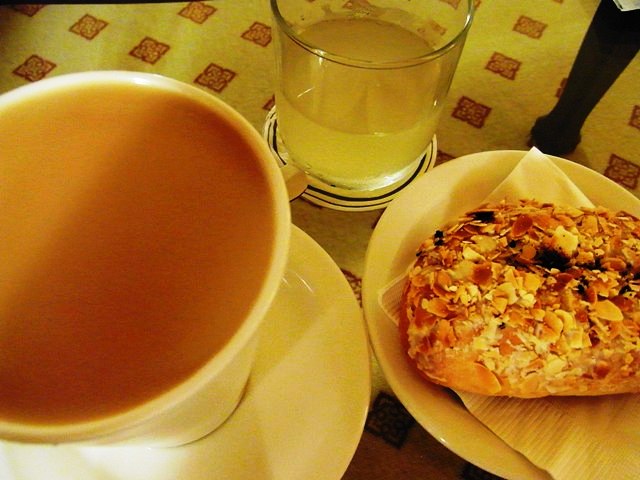 飲み物はミルクティー。ホテル備付けの紅茶に自分で買ってきた牛乳を淹れて。