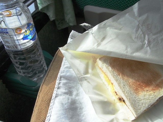 仕方なく朝食をバス停そばの店で購入し、バスに乗り込む。