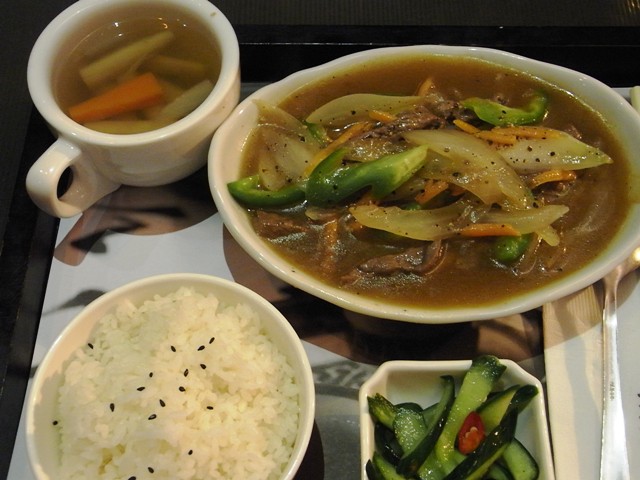 牛ヒレ肉の黒コショウ炒め定食(700円位)。