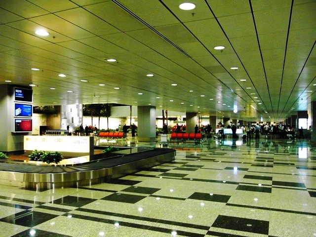 左)アジア最大級のハブ空港でもこの時間は閑散