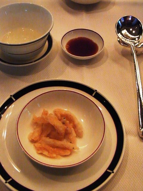 上左)最初はクリスピーに揚げた白身魚のスナック。