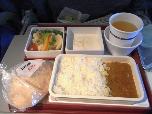 全体に塩が薄く、締まらない味。中華航空だから、こんなものか。